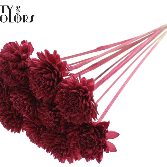 Bold and subtle at the same time: this Shola wooden zinnia on a stick in warm bordeaux red is a perfect addition for those who love low-maintenance, realistic flowers. The flower has a diameter of approximately 6 centimetres and is on a stick of about 50 centimetres, with each bunch containing 10 sticks — ideal for creating multiple small vases or a playful bouquet. This item falls under Artificial Flowers and Shola Flowers and complements the rest of the Zinnia collection by QC.