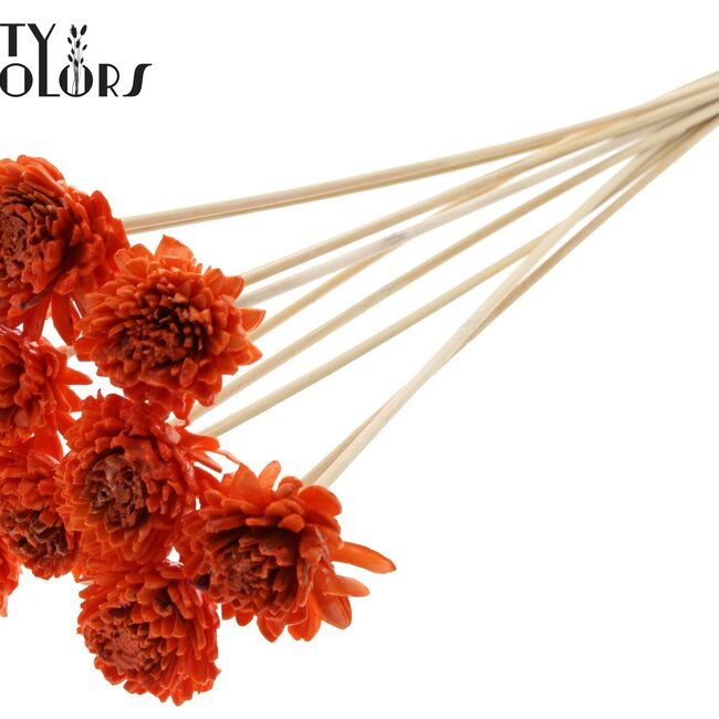 Playful and warm in colour, this shola zinnia is made from fine wood material with a subtle wax layer for extra depth and a finished look. The flower has a diameter of approximately 6 centimetres and comes in a fresh orange hue that instantly adds atmosphere to a vase or as an accent in a bouquet. Perfect for lovers of Artificial Flowers and Shola Flowers, and you can find it in our Zinia collection.