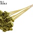 A subtle, handmade shola wooden rose in a warm olive green shade that instantly adds atmosphere to your home without any maintenance. The flower has a rose diameter of approximately 6 centimetres and is on a stick of about 50 centimetres, ideal as a long accent stem or in a loose vase; supplied per bunch of 10 picks and made by QC.