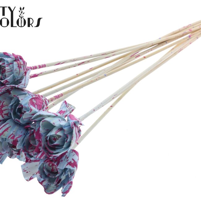 This handmade Shola wooden rose immediately stands out with its playful, speckled colour scheme in light blue and cherry hues and the natural, soft texture of Shola material. The rose has a diameter of 6 centimetres and is mounted on a slender pick of about 50 centimetres, allowing it to beautifully rise above vases and bouquets without being overpowering. As part of the Artificial Flowers selection within the Dear Holly line and supplied by QC, this pick brings a charming, handmade touch to your interior.