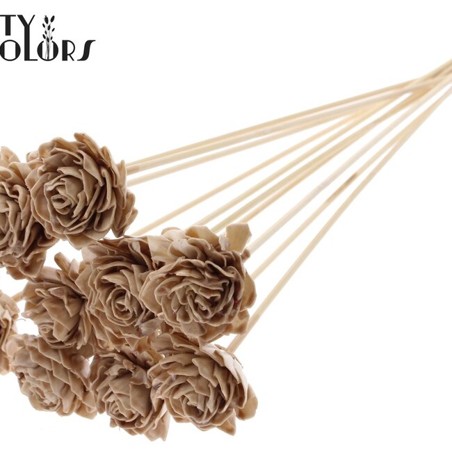 This fine Shola Dahlia stem combines natural charm with low-maintenance ease: a wooden core with a soft wax dahlia in warm beige, flower diameter approx. 6 centimetres and a stem of about 50 centimetres — perfect for adding depth and structure to a vase or bouquet. You get 10 stems per bunch, all in the same elegant colour and shape, ideal if you want a cohesive, rustic look without the hassle of water or wilting.