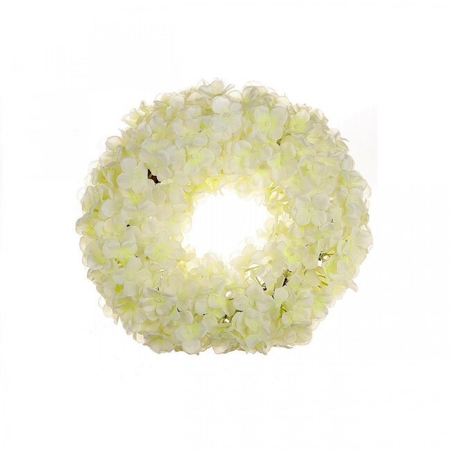 This soft, realistic silk wreath with hydrangeas instantly adds an elegant yet relaxed atmosphere to your home. The cream-coloured flowers have a natural appearance and remain colourfast and fresh without water or maintenance, ideal for the door, wall, or as a subtle centrepiece on the table. With a diameter of 30 centimetres, it is compact enough for small spaces yet full enough to stand out.