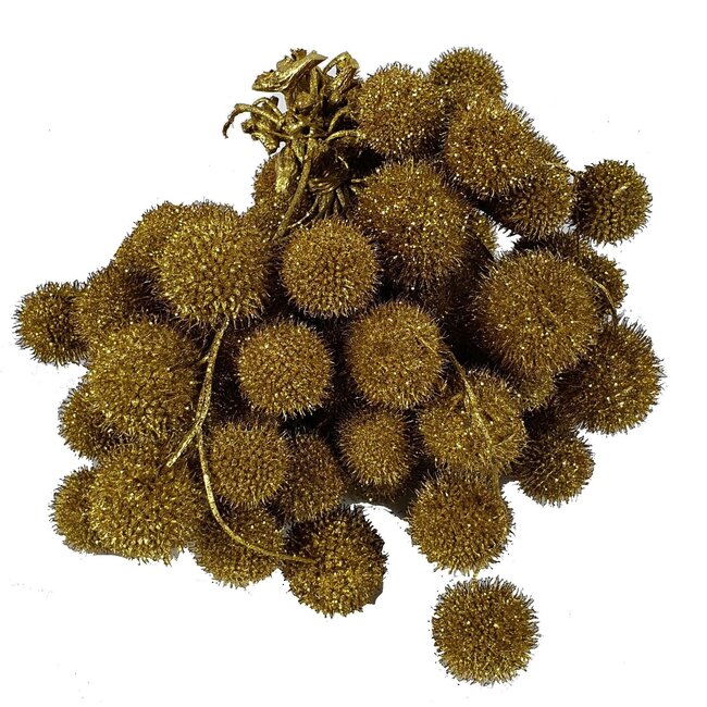 A small, festive accent that instantly adds atmosphere: this gold-coloured ball with glitter on a stick gives your bouquets, vase arrangements, and DIY decorations a subtle shine without hassle. Each bunch contains 10 picks, and they are delivered in sets of 5 bunches (so 50 pieces), giving you enough to enhance multiple creations. Thanks to the sturdy pin and durable finish, the glitter balls stay in place and retain their colour and sparkle—perfect for those who want to keep enjoying the same cheerful effect without maintenance.