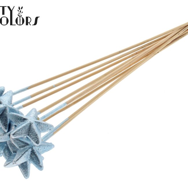 A sparkling accent for your Christmas or home decoration: this flat Styro Star on a stick in metallic blue is mounted on a sturdy pick of approximately 50 cm and is supplied per 50 picks, ideal if you want to create multiple arrangements or table decorations. The light yet robust styrofoam construction retains colour and shape for a long time, making this pick both durable and low-maintenance — perfect for anyone looking to add a lasting and elegant accent at Christmas or other occasions. Suitable for projects within Floristry Items, Picks, Christmas, Home & Hobby and Occasions, and available from the brand QC.