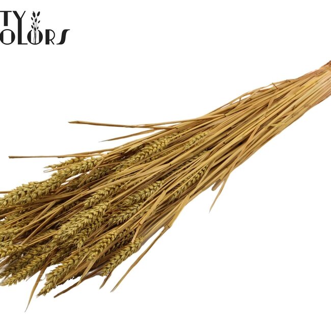 This sun-bleached wheat (Triticum) in soft olive green instantly adds a warm, natural vibe to your interior without any hassle. With a length of ± 60 centimetres and a weight of approximately 220 grams per bunch, it feels sturdy and stays beautifully in place in tall vases or as a loose group arrangement; the subtle, sun-influenced colour retains its charm for seasons and requires hardly any maintenance. At MyFlowers, you can find this type of dried flower because it is sustainable and stays fresh for a long time, ideal if you love a natural, rustic look.