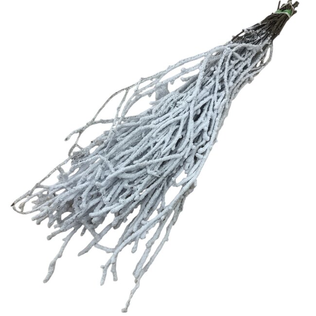 These snow-covered birch branches from Dutch Dried instantly give your interior a fresh, wintry look without any hassle. The subtle 'snow-covered' layer and natural veins create an elegant, Scandinavian look that fits perfectly in a slender vase on the table or as an airy addition to a larger dried flower bouquet. As they are real dried flowers, they remain beautiful for a long time and require hardly any maintenance.
