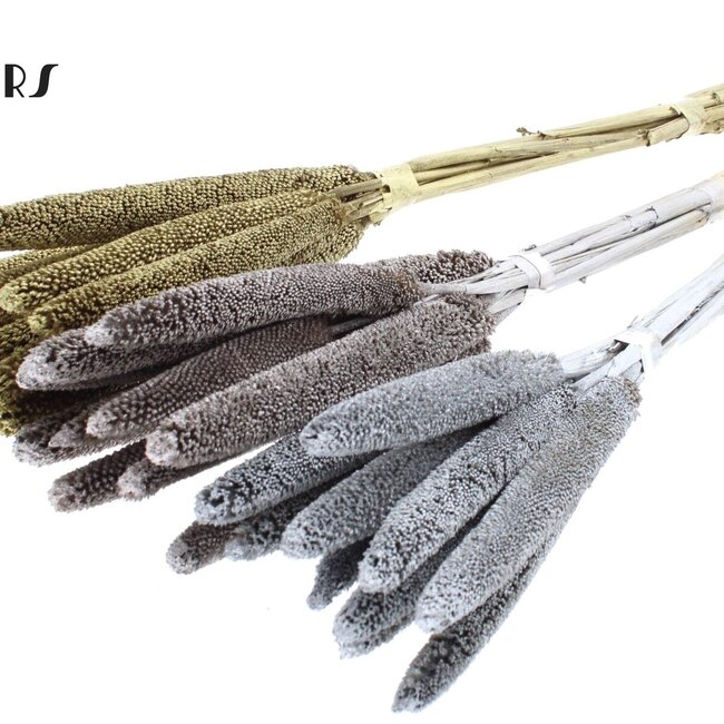 Pratique et polyvalent : les tiges robustes sont idéales seules dans un vase haut ou combinées dans un bouquet avec d'autres fleurs séchées comme l'hélichrysum pour des tons chauds, le ruscus pour des accents verts subtils, le pavot pour le contraste ou le genêt pour une texture supplémentaire. Le charme naturel du millet perlé crée une ambiance détendue et bohème et apporte instantanément une touche finale élégante et durable à tout espace sans nécessiter beaucoup d'entretien.