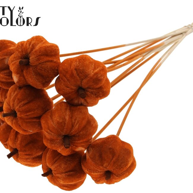 Une douce citrouille en velours sur tige de couleur terracotta chaude qui apporte immédiatement une ambiance chaleureuse et automnale à chaque recoin de votre maison. Ces petites citrouilles sont agréables au toucher, conservent bien leur couleur et leur forme grâce à une finition solide ; par bouquet, vous recevez 10 piques qui fonctionnent parfaitement comme accents subtils dans les bouquets, couronnes ou décorations de table. Idéal pour ceux qui aiment la décoration nécessitant peu d'entretien et qui reste belle longtemps — un détail ludique pour les décorations saisonnières et les jours spéciaux comme Halloween, mais aussi suffisamment subtil pour un usage quotidien.