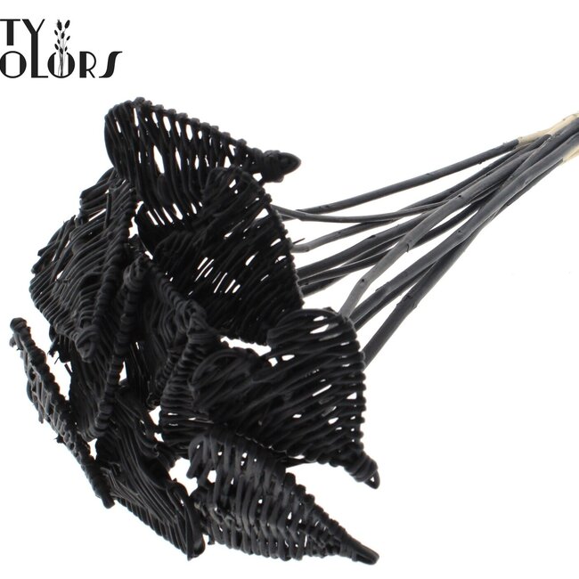 Un charmant pique-cœur en rotin noir qui ajoute immédiatement de l'ambiance à vos bouquets et décorations de table ; la forme plate du Cœur Lata a un diamètre de 8 centimètres et est montée sur un bâton d'environ 50 centimètres, chaque bouquet contient 10 piques. Grâce au rotin naturel et à la finition nécessitant peu d'entretien, le petit cœur reste beau et résistant aux couleurs pendant longtemps, ce qui le rend parfait pour donner à votre intérieur une touche chaleureuse et romantique ou pour ajouter une touche spéciale aux cadeaux et tables lors d'occasions spéciales. Ces piques élégants de QC s'intègrent parfaitement dans la collection Piques et sont idéaux pour des moments tels que Mariage et Fête des Mères.