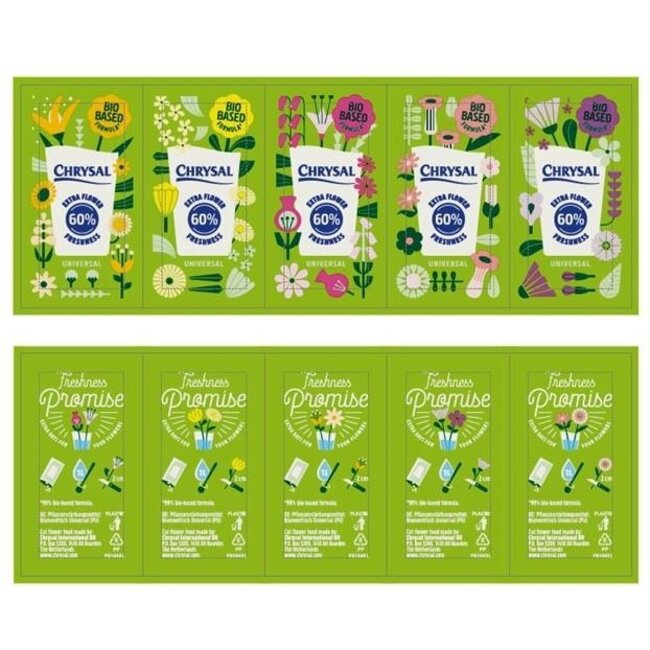 Un sachet d'entretien astucieux de Chrysal, disponible via 4A, qui s'intègre parfaitement dans l'univers des Articles de floristerie et Maison & Hobby, spécialement dans la catégorie Entretien. Ce type de sachet aide les bouquets frais à rester plus longtemps frais et colorés, ce qui permet à vos roses et autres fleurs coupées de conserver leur vitalité et à votre intérieur de garder une apparence soignée plus longtemps.
