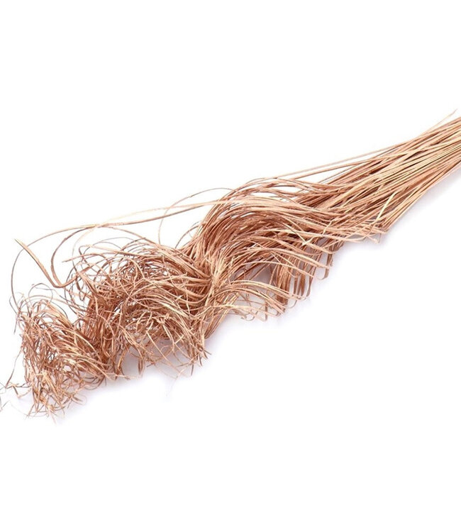 Une feuille de palmier cuivrée remarquable avec une nervure caractéristique et des bords joliment bouclés, directement de 4A. Avec une longueur d'environ 70 cm et un poids d'environ 200 grammes par bouquet, cette pièce de décoration séchée apporte immédiatement hauteur et structure à votre intérieur sans tracas ; la teinte métallique chaude reste belle longtemps et la forme en boucle semble moderne tout en restant naturelle.
