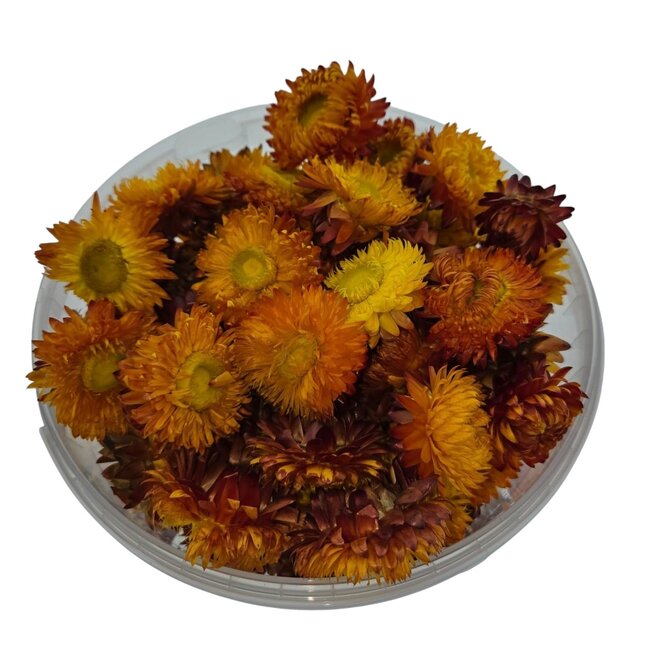 Ces têtes d'Helichrysum orange vif de Dutch Dried apportent immédiatement chaleur et structure à votre intérieur. Les fleurs séchées en vrac sont livrées dans un seau refermable (environ 100 grammes), ce qui les rend faciles à conserver tout en préservant leur couleur et leur forme pendant longtemps. Faisant partie de notre collection de fleurs séchées et s'accordant parfaitement avec Fleurs séchées | Helichrysum, ces têtes offrent un aspect naturel et rustique sans nécessiter beaucoup d'entretien.