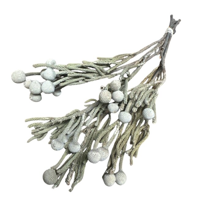 Que vous souhaitiez remplir un vase minimaliste ou composer un bouquet richement stratifié, cette Brunia apporte une touche moderne et naturelle et se sent durable grâce à sa longue durée de vie et sa stabilité de couleur. Elle fonctionne merveilleusement bien comme accent individuel ou mélangée avec d'autres favoris et donne à tout intérieur ou cadeau ce petit caractère supplémentaire sans nécessiter beaucoup d'entretien.