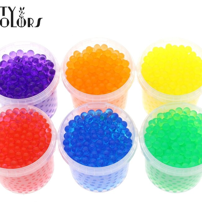 Perles hydrogel joyeuses dans 6 seaux réutilisables. Parfaites pour la décoration, les plantes et le bricolage. Elles retiennent l'humidité et sont faciles à nettoyer. Donnez un coup de boost coloré à votre intérieur ! Lire plus.