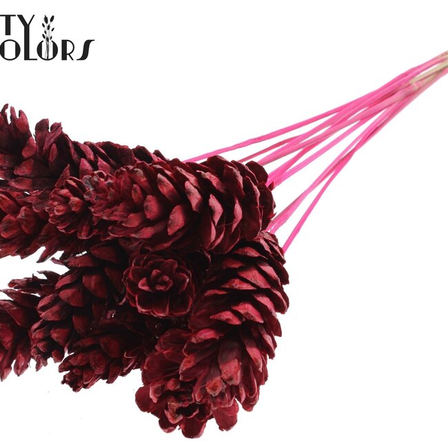 Cette pomme de pin Strobus sur tige de MyFlowers apporte immédiatement à tout intérieur une touche chaleureuse et festive grâce à sa riche couleur cerise et sa structure naturelle. En tant que pique-pomme de pin, elle est idéale pour ajouter un détail supplémentaire aux petits vases, couronnes ou décorations de table; avec une longueur d'environ 50 centimètres, elle se distingue joliment sans dominer. Le lot est livré par bouquet de 10 piques, vous en aurez donc assez pour rafraîchir plusieurs coins à la fois.