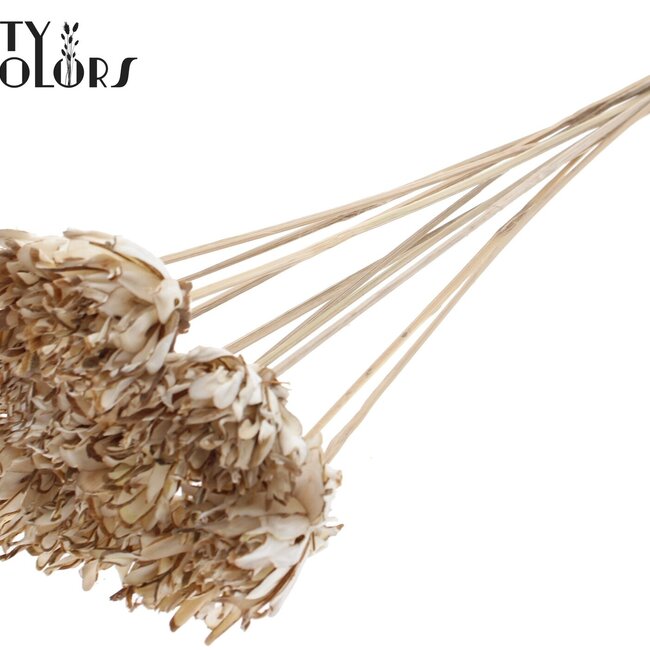 Ces fleurs Shola blanches naturelles sur tige offrent une apparence douce et naturelle sans tracas. Chaque fleur a un diamètre d'environ 6 centimètres et est montée sur une tige d'environ 50 centimètres, ce qui les rend parfaites pour les vases hauts ou comme ajout raffiné dans des bouquets mélangés ; chaque bouquet contient 10 tiges. Ce sont de véritables tiges de pin Shola Slice de la catégorie Fleurs Artificielles, Fleurs Shola et Slice Pine, et elles allient élégance légère et aspect fait main qui s'harmonise avec les intérieurs modernes et campagnards.