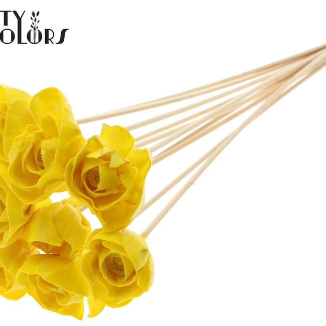 La rose a un diamètre d'environ 6 centimètres et est montée sur une tige d'environ 50 centimètres, livrée en bouquets de 10 décorations dans une couleur jaune vif. Grâce à la combinaison de la tige en bois et des pétales de fleur shola cireux, vous profitez longtemps de couleurs vives et d'un look élégant et intemporel — idéal pour ceux qui souhaitent décorer sans tracas et recherchent des fleurs artificielles durables et charmantes.