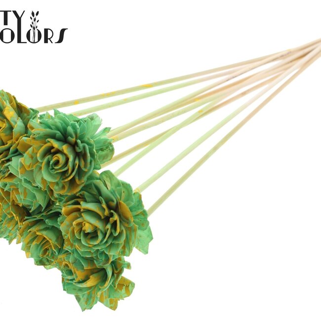 Cette dahlia Shola en bois sur tige combine une apparence naturelle et artisanale avec des couleurs éclaboussées joyeuses qui apportent immédiatement une ambiance à tout espace. Avec un diamètre de fleur d'environ 6 centimètres et une longueur de tige d'environ 50 centimètres, elle constitue un accent léger parfait dans un vase ou un bouquet mélangé; par bouquet, vous recevez 10 tiges. Faisant partie de la collection Fleurs Artificielles et Fleurs Shola (voir aussi Dhaliya), cet article offre l'apparence durable du bois avec la facilité d'entretien des fleurs artificielles, et s'intègre parfaitement dans le style de QC.