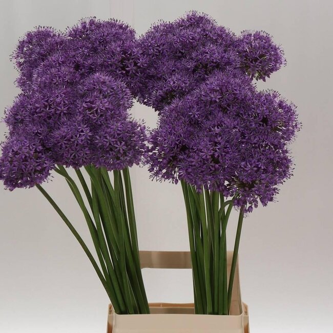 Deze indrukwekkende paarse bolbloemen brengen direct sfeer in huis: grote ronde bloemschermen op slanke stelen van ongeveer 90 cm geven een grafische, bijna sculpturale touch aan elke vaas. Perfect per 10 stelen verpakt, de stevige Allium geeft je interieur een rijk en vrolijk kleuraccent dat lang mooi blijft en weinig verzorging vraagt — een heerlijke keuze als je iets opvallends wilt zonder gedoe. Bij MyFlowers vind je deze sierui van Freshy, ideaal voor liefhebbers van verse bloemen en iedereen die houdt van stijlvolle, duurzame bloemdecoratie.