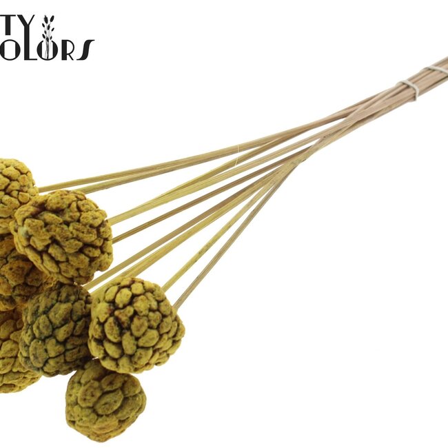 Een zonnige, gebleekte Atta-fruit op stok in warm geel brengt meteen karakter en natuurlijke charme in huis zonder gedoe: dit custardappel bijsteker-ontwerp van QC is ongeveer 50 cm lang en wordt geleverd per bos van 10 bijstekers, perfect om vaasjes, kransen of losse droogboeketten een speelse touch te geven. Dankzij de duurzame, gedroogde structuur behoudt de kleur en vorm lang hun aantrekkingskracht, waardoor ze ideaal zijn voor iedereen die zoekt naar onderhoudsarme, kleurrijke accenten voor Huis, Tuin & Deco of relaxte hobbyprojecten.