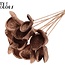 De koperkleurige Badam op steel brengt direct warmte en een subtiele glans in je interieur. Met een lengte van ongeveer 50 centimeter en 10 stelen per bos is het een stevige bijsteker die lang mooi blijft, dankzij de duurzame afwerking die verkleuren en afbrokkelen voorkomt. Door de natuurlijke look past deze rustieke steel perfect in vaasjes, droogboeketten of als accent tussen andere droogbloemen zonder dat je veel onderhoud nodig hebt.