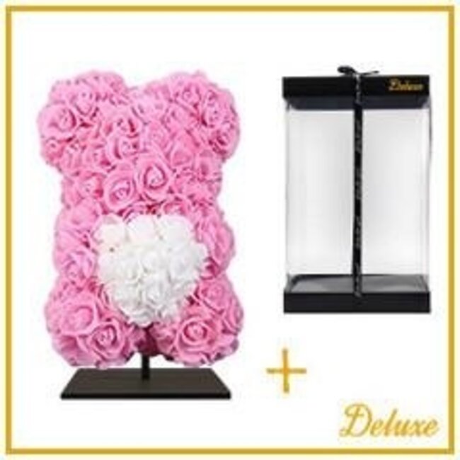 Een schattige knuffelbeer opgebouwd uit talloze foamrozen in zacht lichtroze: compact (ongeveer 25 cm hoog) en geleverd met een handig standaardje zodat 'ie altijd perfect staat te pronken. De perfecte mix van romantiek en onderhoudsarm design — geen water of verzorging nodig, maar wél die rijke, volle look van een boeket dat nooit verwelkt. Bij MyFlowers zie je hoe zulke unieke stukken een vleugje elegantie en warmte toevoegen aan een slaapkamer, vensterbank of als opvallend accent in je woonkamer.