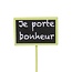 Een charmante groene bijsteker met de Franse tekst "Je Porte Bonheur" die direct sfeer toevoegt aan kleine boeketjes en cadeaus. Deze compacte decoratie heeft een breedte van 5 cm, hoogte van 3 cm en een totale lengte van ongeveer 15 cm; geleverd per set van 25 bijstekers. Met het herkenbare ontwerp en frisse kleur past hij perfect binnen de categorieën Bijstekers, Bloemisterijartikelen en Huis & Hobby en komt van het merk 4A.