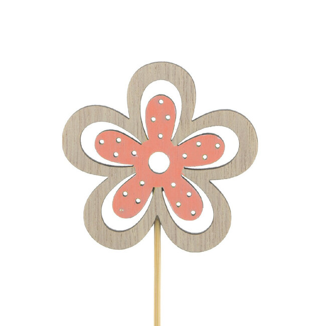 Deze speelse bloem bijsteker van 4A brengt meteen een vrolijke touch in huis: een warme zalmoranje bloem met een bloemdiameter van ongeveer 6 cm en een bijsteker van circa 10 cm. Verpakt per 25 stuks is het een handige set voor wie meerdere bloemstukjes, tafeldecoraties of cadeautjes wil opleuken zonder gedoe. De compacte maat en heldere kleur maken 'm ideaal om te combineren met zowel gedroogde rozen als andere textuurrijke elementen.