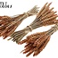 Een speels en zacht boeketje met mini tarwe (Triticum) in een Frosted zalmkleurige tint, geleverd per 10 bossen. Deze gedroogde tarwe heeft die natuurlijke, rustieke look met een subtiele kleurwash die je interieur meteen warmer maakt; perfect als los vaasje op een bijzettafeltje of als toevoeging aan een groter arrangement. Combineer het moeiteloos met Helichrysum voor textuur, ruscus voor groenaccenten of een paar gedroogde rozen en papaver voor een romantische touch.