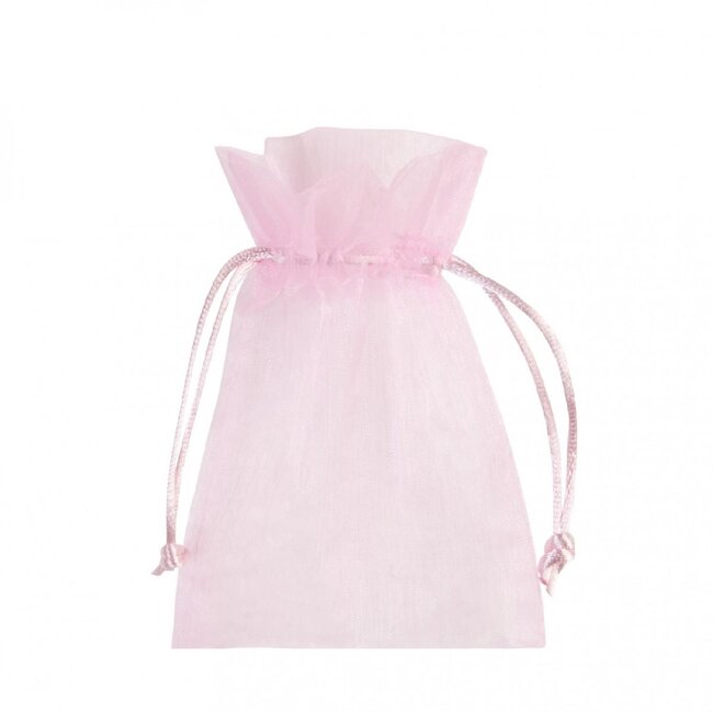 Zacht lichtroze organza zakjes uit de MyFlowers-collectie van 4A, perfect om kleine cadeautjes of bedankjes stijlvol te verpakken. De tasjes komen per tien en hebben een doorsnede van ongeveer 9 cm met een hoogte rond de 12 cm, waardoor ze precies groot genoeg zijn voor snoepjes, sieraden of gedroogde bloemetjes zonder te zwaar te worden.