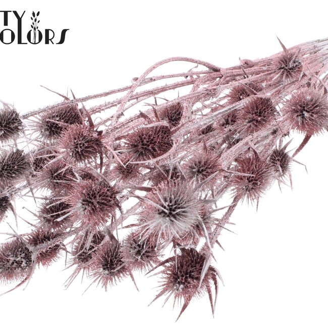 Deze prachtige Cardistella distels van QC brengen meteen een glamoureuze, natuurlijke touch in huis. De takken zijn platinakleurig met een subtiele glitter en hebben een mooie, stevige structuur van ongeveer 55 cm per tak; je krijgt 10 takken per bos zodat je gelijk een vol arrangement hebt. Als onderdeel van de collectie Droogbloemen A - E en Droogbloemen vind je ze terug bij Cardi Stella (Distel), perfect voor wie op zoek is naar iets unieks en onderhoudsarm dat lang meegaat.