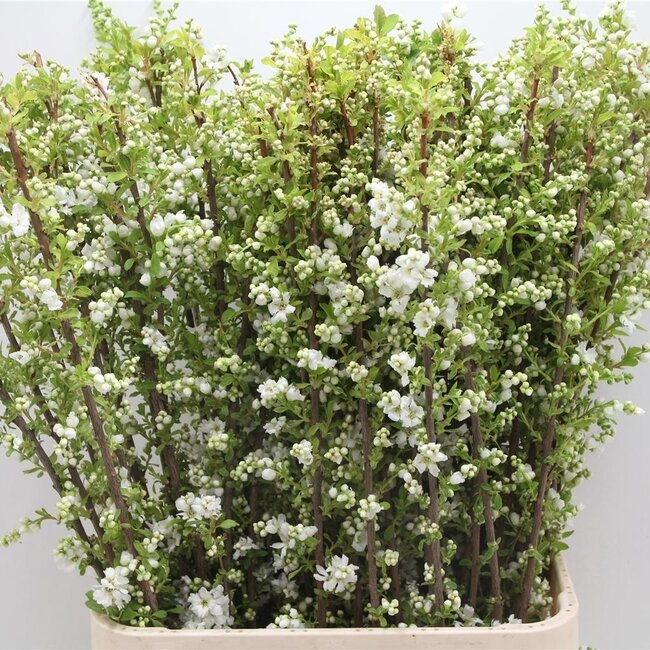 Deze Exochorda van Freshy komt met lieflijke, sneeuwwitte bloesems die een lichte, bijna sprookjesachtige uitstraling geven aan elk interieur. De fijn vertakte takken zorgen voor een luchtig en elegant silhouette in een hoge vaas of als subtiel contrast in een gemengd boeket, en geven je woonruimte meteen een frisse, natuurlijke vibe zonder overdreven te doen.