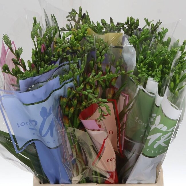 Vrolijke, geurige stelen vol karakter: deze freesias komen in vijf schitterende kleuren en geven elke woonkamer of vaas meteen een frisse boost. Als verse bloemen uit de categorie Verse bloemen en Verse bloemen D - K stralen ze de natuurlijke charme uit waar je spontaan blij van wordt, en dankzij het merk Freshy weet je dat je kwaliteit in huis haalt. Meer details en variaties vind je bij Freesia (Freesia).