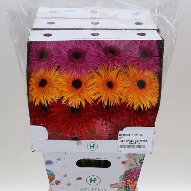 Gerbera Gr Aqua “Spider Mix” | Kleur: Gemengde Kleuren | Lengte ± 50 centimeter | Per 15 stelen