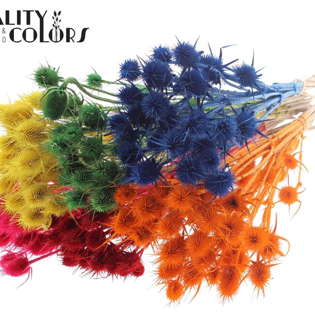Deze gebleekte distels uit de Cardistella-collectie geven met hun gemengde kleuren en ruige vorm meteen karakter aan je interieur. Elke bos bevat tien stevige takken van ongeveer 55 cm, waardoor ze perfect zijn om hoogte en textuur toe te voegen aan een vaas, plank of vensterbank. Van het merk QC, zorgvuldig gedroogd zodat de fragiele details behouden blijven maar de takken toch duurzaam en stevig aanvoelen.