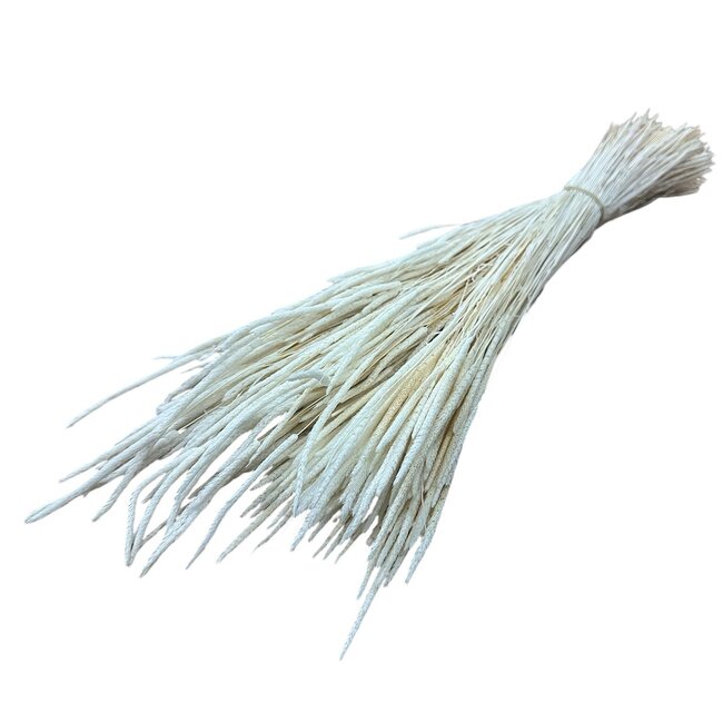 Strakke, pluizige kopjes van wit gebleekte phleum brengen meteen rust en textuur in je interieur zonder gedoe: geen water, geen verwelken, gewoon blijvende sfeer. De zachte, neutrale uitstraling past moeiteloos bij frisse Scandinavische styling of juist warme, bohemien hoekjes en voelt verrassend natuurlijk aan ondanks de bleking; een subtiele blikvanger die ruimte geeft zonder te overheersen. Van Casa Alegria zijn deze droogbloemen zorgvuldig geselecteerd voor een gelijkmatige kleur en stevige structuur, zodat je lang plezier hebt van het frisse effect.