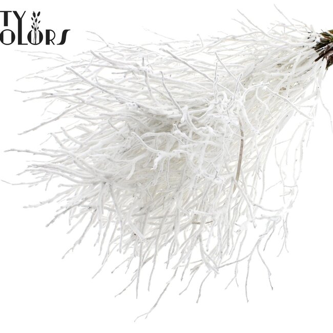Deze flocked witte Huckelberry takken (Vaccinium) van QC brengen subtiele, natuurlijke elegantie in huis zonder gedoe. De zacht gevlekte finish geeft diepte en textuur, waardoor ze prachtig combineren met andere Droogbloemen zoals gedroogde rozen, papaver, bezem (broom), ruscus en Helichrysum — ideaal voor wie een warm, rustiek of modern hoekje wil opfleuren met een langdurig accent.