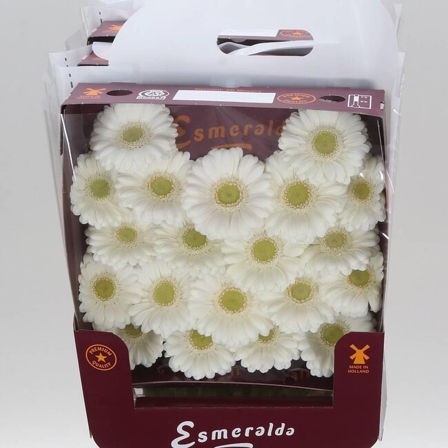 Gerbera Mi Aqua “Albino” | Kleur: Wit | Lengte ± 45 centimeter | Per 20 verse bloemen