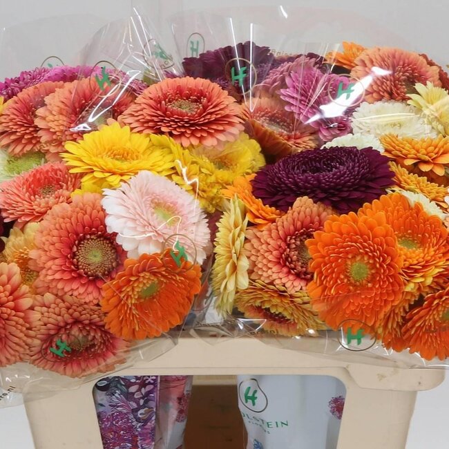 Germini Aqua “Pom Gemengd” | Kleur: Gemengde Kleuren | Lengte ± 50 centimeter | Per 20 verse bloemen