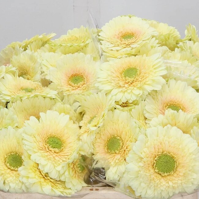 Beoordeel Freshy Germini Aqua “Romily” | Kleur: Geel | Lengte ± 50 centimeter | Per 20 verse bloemen