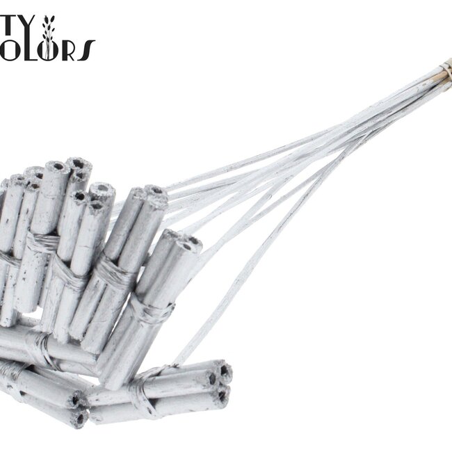 Deze decoratieve jute stokjes van QC geven je boeketten en huisdecoratie meteen een speels, natuurlijk accent met een subtiele zilverkleurige glans. Ideaal binnen de categorieën Bijstekers en Droogdeco, maar ook perfect passend bij Bloemisterijartikelen, Huis, Tuin & Deco en Huis & Hobby. Elk bosje bevat tien bijstekers die een mooie textuur toevoegen aan zowel losse posies als samenstellingen met gedroogde rozen, papaver, brem, ruscus en Helichrysum.