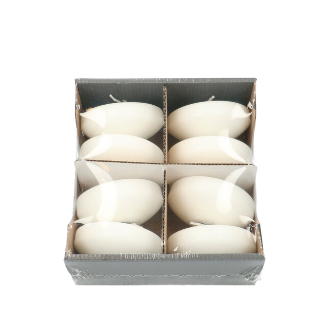Geef je interieur een warme sfeer met deze set van 8 naturelle witte drijfkaarsen (Ø 8 cm). Perfect voor styling en combineren met droogbloemen voor een chique uitstraling. Lees meer.