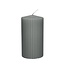 Deze stijlvolle, geribbelde stompkaars geeft meteen warmte en karakter aan je interieur zonder overdreven te zijn. Het zachte grijs past zowel bij een minimalistische Scandinavische look als bij een warme, boho-opstelling; de ribbels zorgen voor een subtiele textuur die mooi samenwerkt met gedroogde rozen, papaver, brem, ruscus of Helichrysum voor een langdurig sfeervol plaatje.