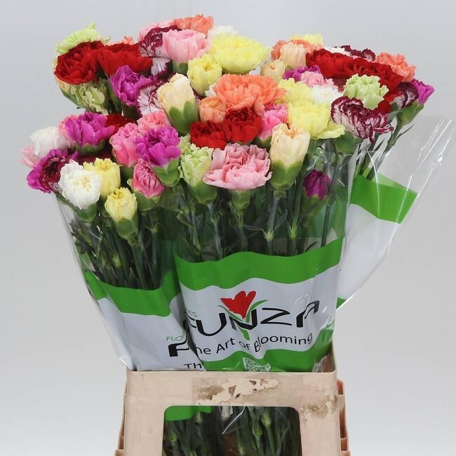 Lange Anjer Funza “Rainbow Mix” | Kleur: Gemengde Kleuren | Lengte ± 70 centimeter | Per 20 verse bloemen