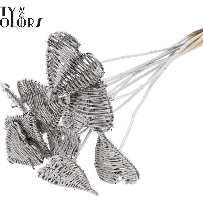 Dit platinakleurige rotan hartje op stok geeft je boeketten en tafeldecor meteen karakter: rustig, natuurlijk en toch net even glam dankzij de subtiele metallic tint. De Lata Heart platte bijsteker voelt licht en stevig aan en komt per bos in setjes van tien, ideaal om meerdere vaasjes of cadeaus tegelijk op te fleuren. Het rotan behoudt zijn charme en structuur, waardoor het een duurzame en onderhoudsarme keuze is die lang mooi blijft staan.