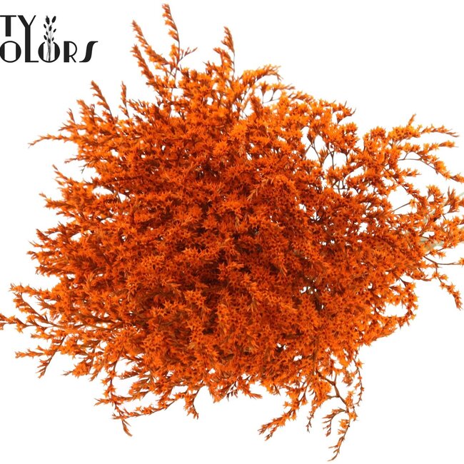 Dit vrolijke bosje gedroogde zeelavendel, gemaakt van Limonium Tataricum in een warme oranje tint, brengt direct karakter in huis zonder gedoe. Met een lengte van ongeveer 30 cm en een gewicht van zo'n 45 gram per bos behoudt het zijn fijne, papery textuur en levendige kleurseffecten: ideaal om op een vaas te laten pronken of te mixen met andere droogbloemen uit de categorieën Droogbloemen F - O en Droogbloemen. Je vindt dit type ook terug bij Limonium (Statice), waar variatie en natuurlijke charme samenkomen.