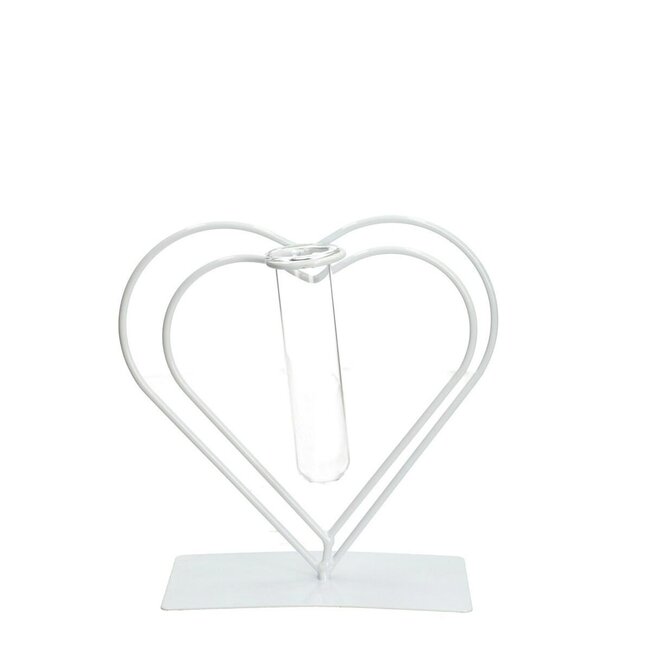Dit lieve hartframe met kleine buisvaasjes is een speelse en sfeervolle manier om losse stelen of mini boeketjes te tonen. Het naturel-witte design van 4A geeft een frisse, rustige touch aan elk plekje in huis en werkt prachtig op een vensterbank, dressoir of nachtkastje. Combineer het met gedroogde rozen voor romantiek, papaver voor een speels accent, bezem (broom) en ruscus voor textuur of Helichrysum voor blijvende kleur; de natuurlijke charme en lange levensduur van gedroogde bloemen maken het een onderhoudsarme en kleurrijke keuze.