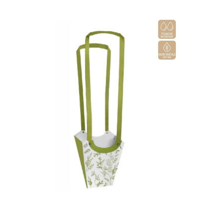 Deze charmante Muguet Aqua tasjes van 4A combineren wit en groen in een fris, subtiel dessin dat direct sfeer brengt bij een cadeau of klein bloemwerk. Verpakt per tien stuks zijn ze ideaal om kleine boeketjes of losse bloemen een verzorgde look te geven; denk aan gedroogde rozen, papaver, ruscus of Helichrysum die zo meteen een extra stijlvolle presentatie krijgen. Ze passen perfect bij de categorieën Verpakkingen en Huis & Hobby en sluiten naadloos aan op onze Tassen collectie.