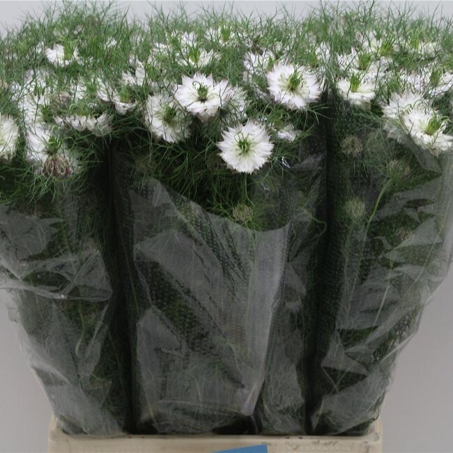 Nigella Juffertje-in-het-groen “Mystery White” | Kleur: Wit | Lengte ± 75 centimeter | Per 10 stelen verse bloemen