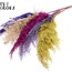 Deze vrolijke bundel pampas brengt meteen sfeer in je interieur: lange gedroogde pluimen in gemengde kleuren, ongeveer 100 cm en per bos verpakt met vijf krachtige stelen. De zachte, feathery textuur van Cortaderia (Pampasgras) past perfect bij andere droogbloemen uit de categorieën Droogbloemen A - E en Droogbloemen — denk aan gedroogde rozen, papaver, broom, ruscus of Helichrysum voor een gelaagd, natuurlijk effect. Door de rijke kleuren en volle vorm blijven de pluimen lang mooi zonder water of onderhoud, ideaal als eyecatcher in een hoge vaas of als basis voor een boutique-achtige bos.